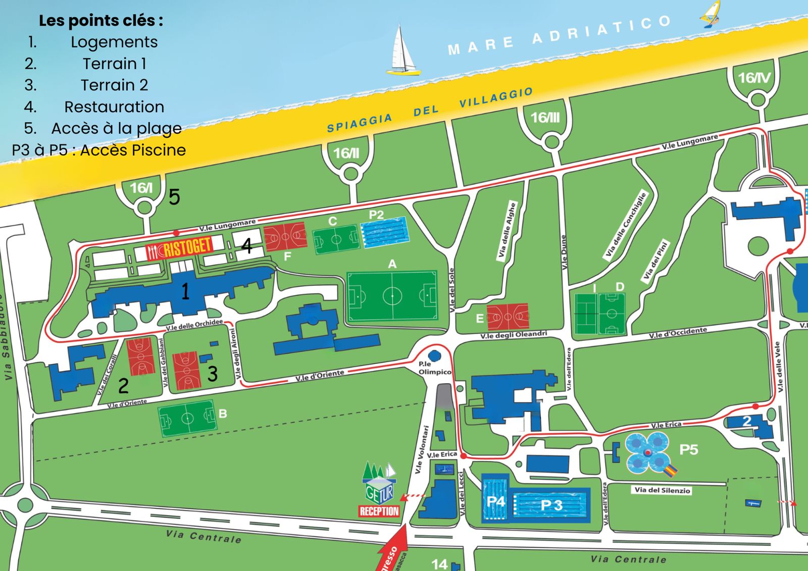 Le Bella Italia EFA Village, situé à Lignano Sabbiadoro sur la côte adriatique italienne, est un centre de vacances sportives reconnu pour la qualité de ses infrastructures professionnelles.
